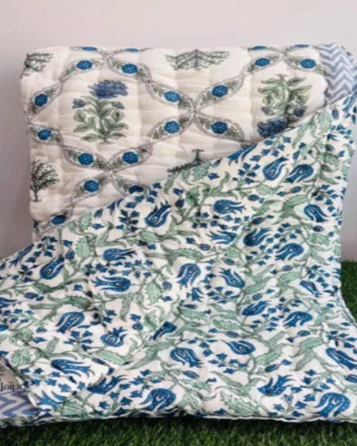 Crafted using the traditional tie-and-dye method on breathable organic muslin and filled with premium surgical cotton, this lightweight yet cozy razai is suitable for year-round comfort.
